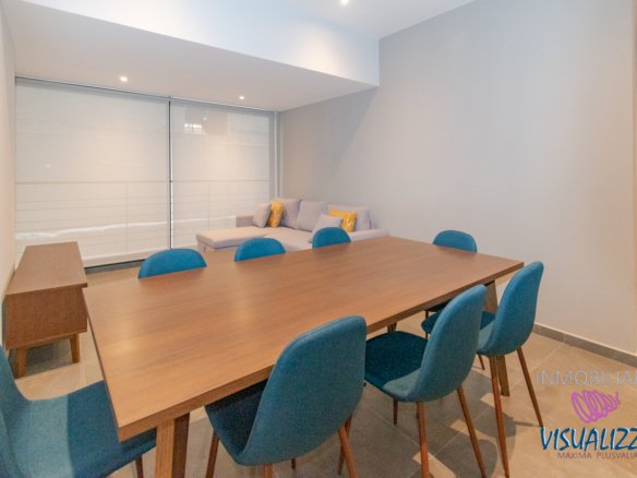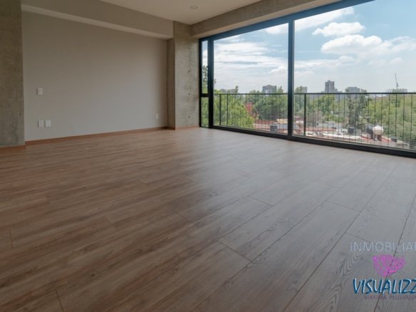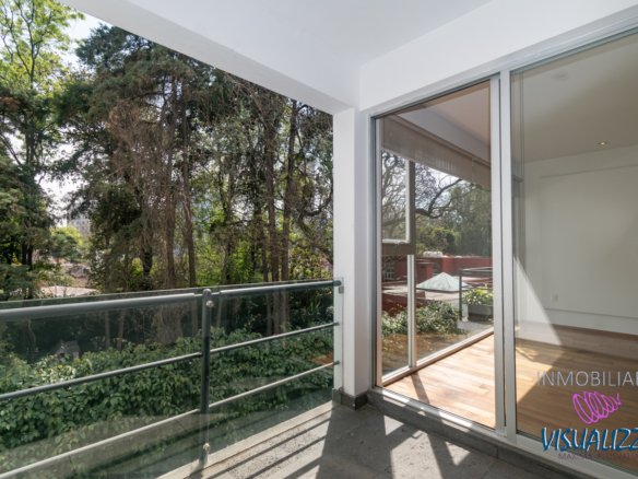 Departamento en planta baja, exterior cuenta con una amplia estancia para sala y comedor y medio baño de visitas, así como una cocina de concepto cerrado, cuarto de lavado y cuarto de servicio con baño, en la parte del frente dos recamaras la principal con walking closet con baño privado y terraza, la segunda recamara con un amplio closet de pared a pared y tambien con baño privado.